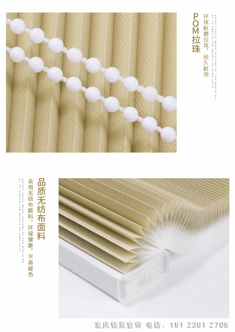 拉珠蜂巢简介:拉珠蜂巢采用无纺布面料,环保无异味,适用于侧面窗户,具有遮阳、隔热等功能